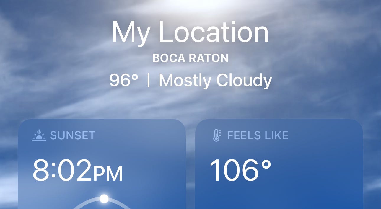 I took a few days off to visit family for a long weekend in South Florida. Temps have been in the mid-90s, with feels like temps in the triple digits.